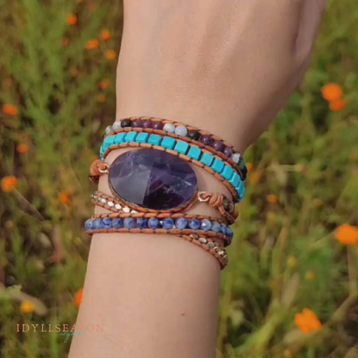 - Matériaux : Pierres naturelles Turquoise, Améthystes, Perles en métal argenté, Sodalite du Brésil, Onyx.