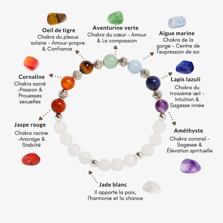 Arborez ce superbe Bracelet 7 Chakras "Guérison et Amour" pour équilibrer vos centres d'énergie et vous envelopper d'une énergie d'amour en tout temps.