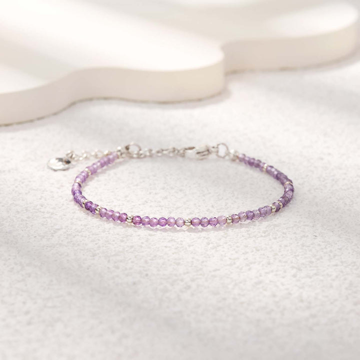 Aussi délicat que la première lueur d'un crépuscule d'hiver, et aussi apaisant qu'un secret murmuré au creux de l'oreille, ce bracelet en améthyste naturelle est une invitation à la paix intérieure. Conçu pour celles et ceux qui cherchent un refuge contre le bruit du monde, il est bien plus qu'un simple bijou en pierre ; c'est un puissant allié spirituel.