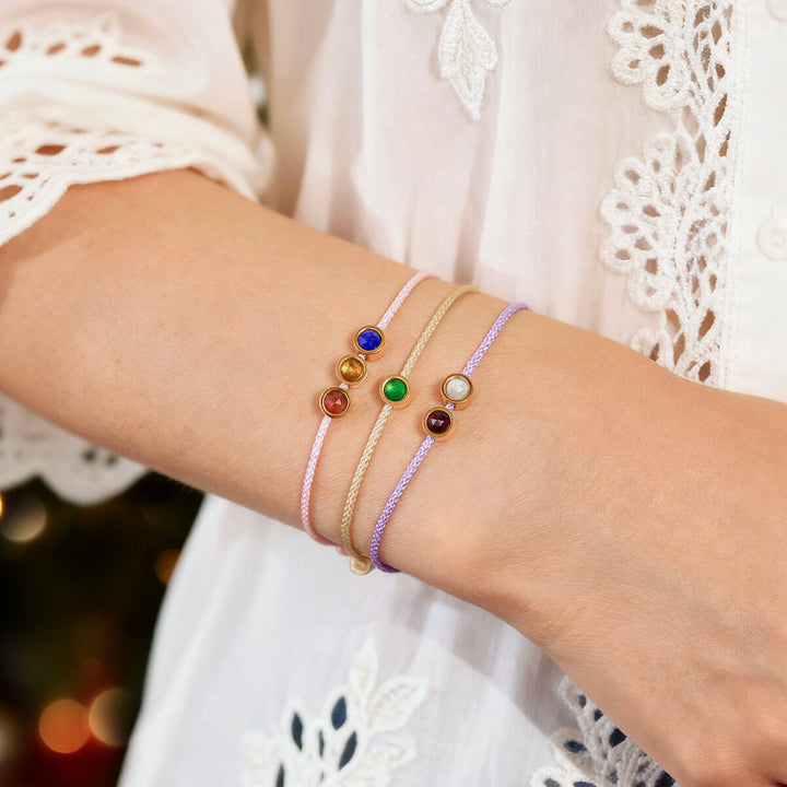 Chaque pierre de naissance correspond à un mois de l'année et diffuse des bienfaits qui lui sont propres. Créez une synergie unique en associant les pierres de vos enfants, de votre couple ou de vos piliers de vie. C'est une célébration de votre histoire, un porte-bonheur coloré et raffiné à offrir ou à s'offrir comme une promesse de bien-être.