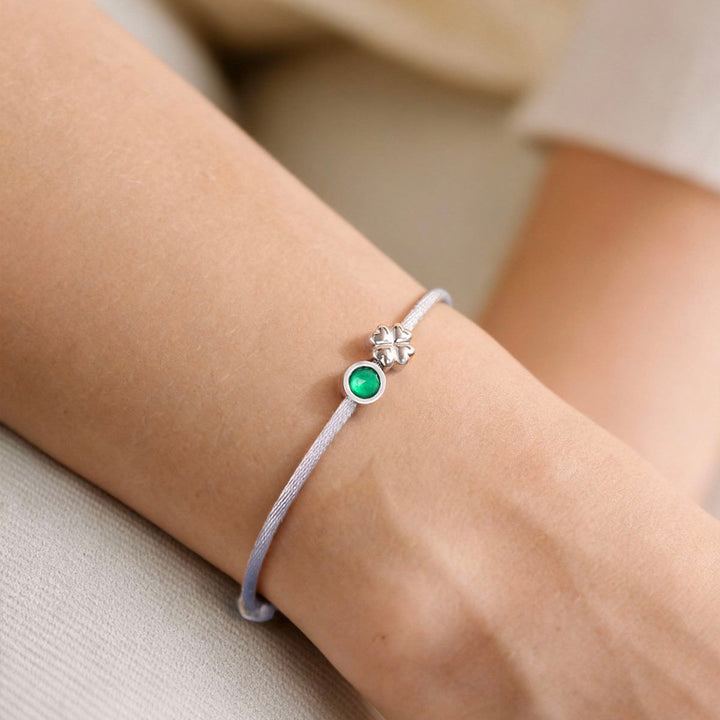 Bracelet Cordon Trèfle Porte‑Bonheur en Pierres de Naissance