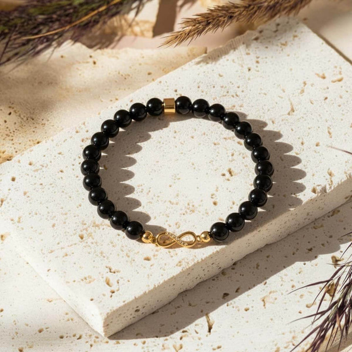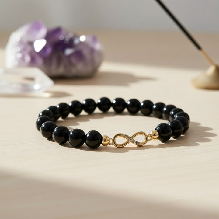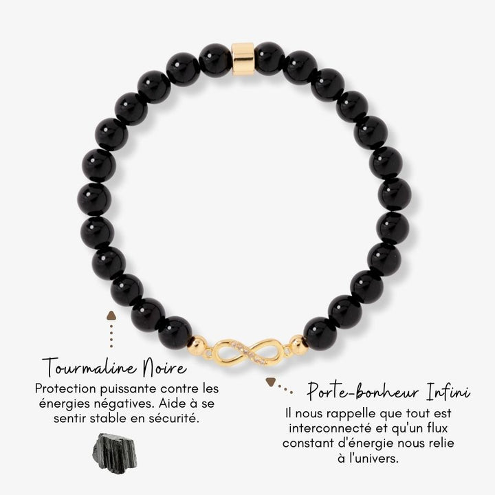 En aspirant à l'infini, vous atteignez le cœur de vous-même. Combinez le symbole de l'Infini avec la protectrice Tourmaline noire et profitez des bénédictions éternelles dans les aspects de votre vie que vous chérissez le plus. Notre puissant "Bracelet de Protection Éternelle" ne se contentera pas de rendre vos expériences, vos connexions et vos vertus éternelles, mais les purifiera et les renforcera également.