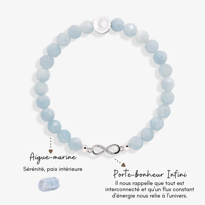 Ne soyez jamais pressé ; faites tout calmement et avec un esprit serein. Comme un murmure doux et apaisant, notre bracelet "Sérénité Éternelle" vous guide avec délicatesse vers un état de sérénité et d'équilibre profond. Ce bracelet, composé d'aigue-marine scintillante et du symbole de l'infini, agit comme une source perpétuelle de calme et de courage, vous aidant à naviguer les tumultes de la vie avec grâce et sagesse.