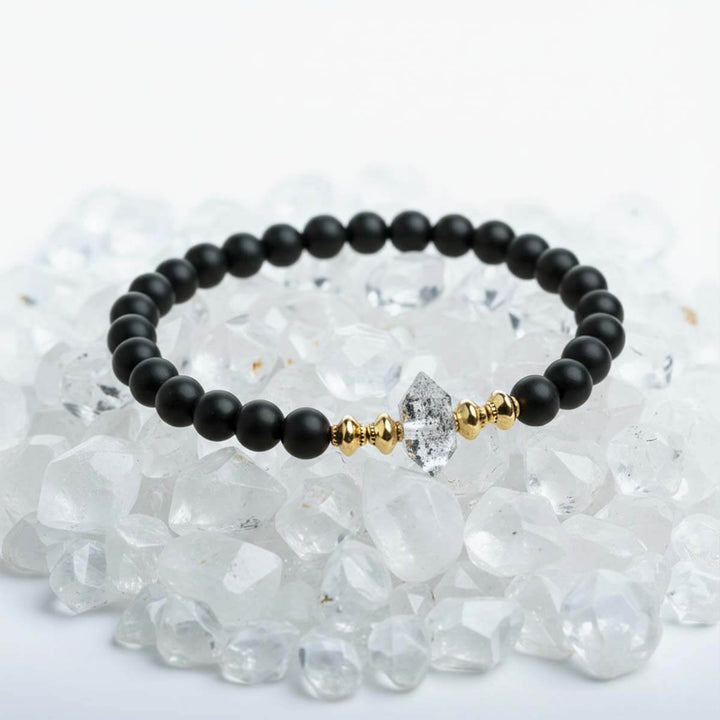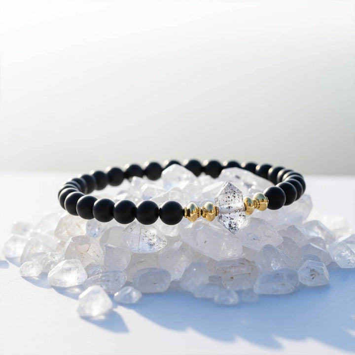 Bracelet "Gardien de Positivité"en Shungite, Diamant d’Herkimer