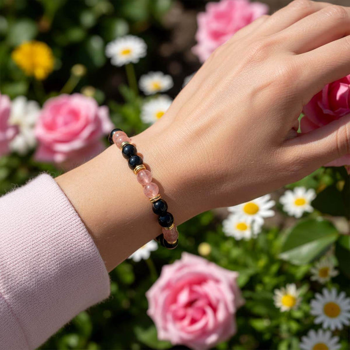 Bracelet "L'amour de soi" Tourmaline Noire et Quartz Fraise