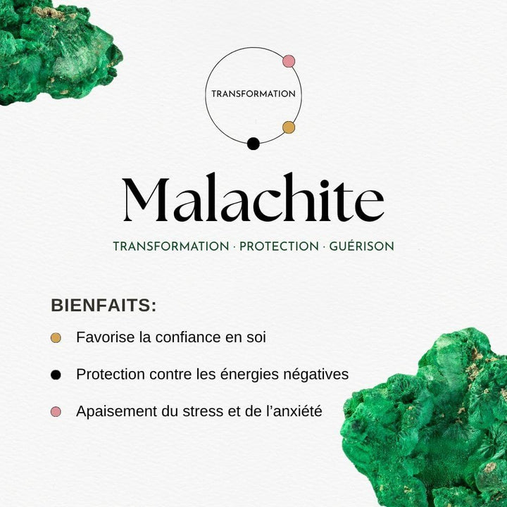 Alors, osez le changement, accueillez votre plein potentiel, et élancez-vous. Laissez les hautes vibrations de la Malachite être le catalyseur de votre plus belle métamorphose.