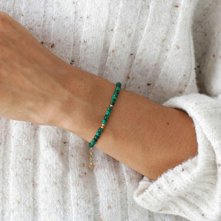 Un tourbillon de verts profonds, vibrant d'une énergie presque palpable. Plus qu'un bijou, ce bracelet en Malachite est une promesse. La promesse de plonger au cœur de vous-même pour y tourner la clé d'une serrure intérieure, libérant un flot de confiance et de changements lumineux.