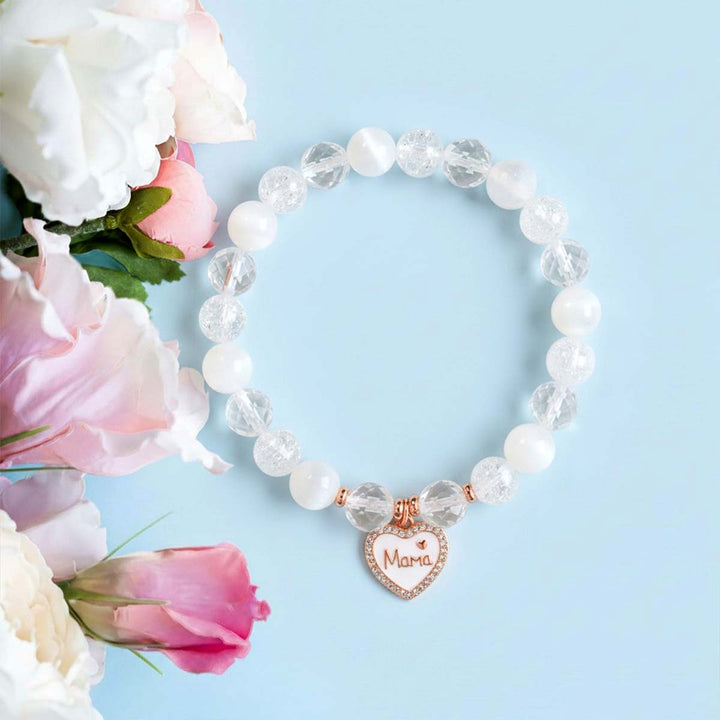 Bracelet 'Merci Maman' en Cristal de roche et sélénite