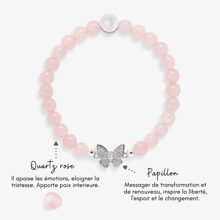 Regardez combien de joie existe dans votre vie. Allégez-vous. Cherchez le changement. Faites des changements lorsque les opportunités se présentent. Le papillon vous apprendra que la croissance et le changement ne doivent pas être traumatiques. Le changement peut se produire aussi doucement et aussi joyeusement que vous le souhaitez. Notre bracelet "l'Amour et la Croissance" vous rappelle de ne pas prendre les choses trop au sérieux dans votre vie. Il éveille un sentiment de légèreté et vous rappelle de vous lever et de bouger, car si vous ne bougez pas, vous ne pouvez pas danser.