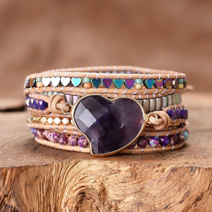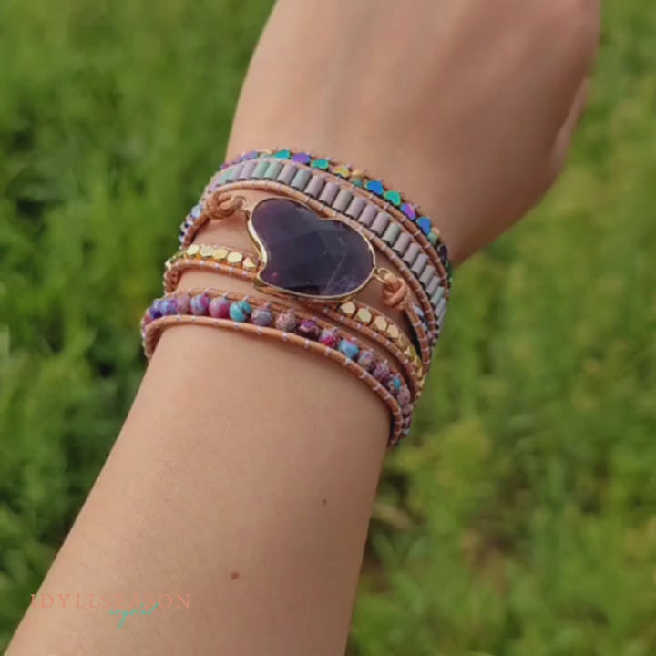 - Matériaux : Améthyste, perles de cristal, pierres naturelles à facettes