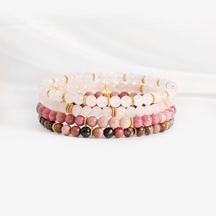 - Pierres : Rhodochrosite,Quartz Rose,Rhodonite,Pierre de Lune Arc-en-ciel